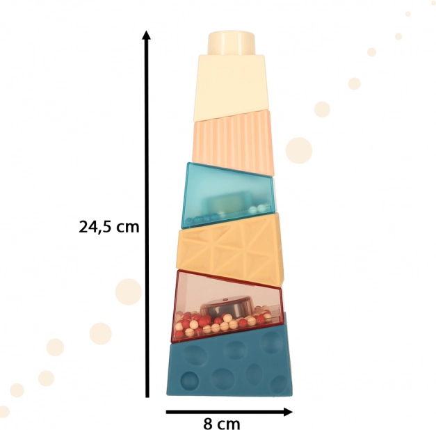 Vďaka veľkým rozmerom jednotlivých kociek je hračka bezpečná pre deti od 18 mesiacov. S jej pestrými farbami a rozličnými textúrami sa tiež skvele hodí ako ozdoba detskej izby.