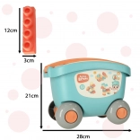 Kocky sú dodávané s nálepkami, ktoré hre dodajú ďalší rozmer a motivujú deti k ďalšiemu používaniu. Pútavé a farebne rozmanité kocky sú perfektne uložené v úložnom vozíku, ktorý je vybavený praktickými kolieskami, uľahčujúcimi prenášanie.