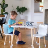 Táto moderná drevená súprava v nadčasovej kombinácii bielej a prírodného dreva krásne zapadne do každého detského izbičky či herne. Oblé línie a hravý vzhľad s medvedími uškami podnecujú deti k fantázii, zatiaľ čo robustné materiály zaisťujú dlhú životnosť a jednoduché čistenie.