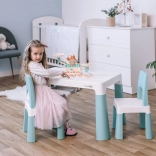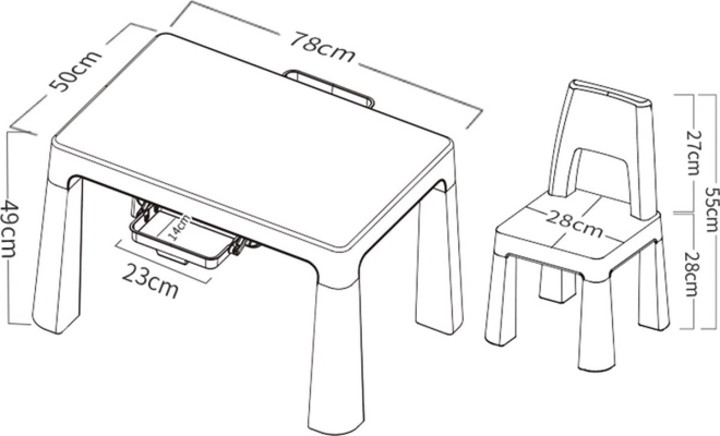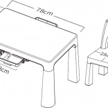 Plastový stolík so stoličkami Neo ponúka odolný plast a moderný vzhľad, ktorý zapadne do každého detského interiéru. Je vybavený dvoma praktickými zásuvkami s rozmermi 23 x 14 cm, kde si deti môžu uložiť drobnosti.
