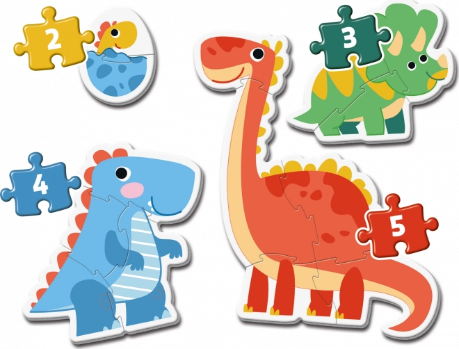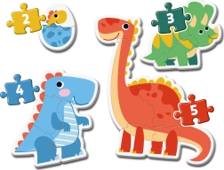 Deti od 2 rokov si môžu užiť skladanie prvých puzzle s tématikou dinosaurov. Každé puzzle obsahuje rôzny počet dielikov - 2, 3, 4 a 5, čo umožňuje postupné zlepšovanie a získavanie nových zručností.