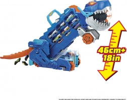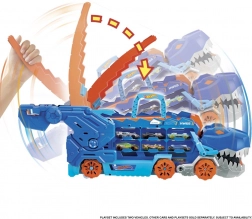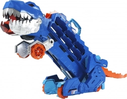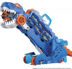 Unikátny dinosauří transporter kombinuje úložisko pre viac než 20 kovových autíčok s akčnou hrou. V režime prepravníka stačí zatiahnuť za madlo a sledovať, ako T-Rex „požiera“ autíčka na svojej ceste. Jediným pohybom chvosta ho premeníš na mechanického T-Rexa so svetelnými efektmi a dinosauřími zvukmi.