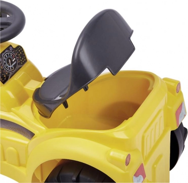 Detské odrážadlo v tvare bagera poteší malých vodičov svojou funkčnou prednou lyžicou ovládanou dvoma rukoväťami, protišmykovým volantom (bez riadenia), robustnými plastovými kolesami a praktickým úložným priestorom pod sedadlom. Kompaktné rozmery 66 × 32,5 × 28 cm sú ideálne do bytu aj na záhradu.