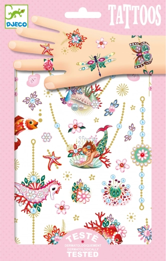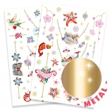 Ozdobte svoju pokožku elegantnými motívmi šperkov s dočasnými tetovaniami DJECO. Balenie obsahuje 2 archy s náramkami, prsteňmi a náhrdelníkmi. Aplikácia je jednoduchá, rýchla a dermatologicky testovaná, takže si môžete užívať bezpečnú a kreatívnu zábavu s kamarátkami.