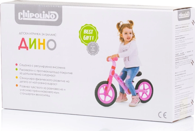 Odrážadlo Dino od značky Chipolino je skvelým prvým krokom k jazde na bicykli. Vďaka ľahkému rámu a jednoduchému ovládaniu sa deti od 1,5 roka naučia držať rovnováhu a plynule prejdú na klasický bicykel bez pomocných koliesok.