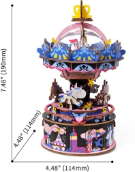 Tento detailný model veselého kolotoča od značky Robotime je ideálnou voľbou pre každého kreatívneho nadšenca. Skladačka je dodávaná nerozložená a je vybavená podrobným návodom na zostavenie. Po zostavení sa kolotoč stane skvelou ozdobou vášho priestoru.