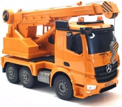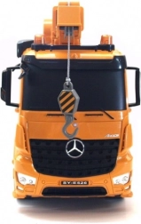 Model RC žeriavu MERCEDES-BENZ AROCS prináša plne funkčnú stavebnú techniku do detskej izby. Jazdí dopredu aj dozadu, zatáča do strán a cez ovládač precízne ovláda výložník aj hák. Stĺp žeriavu sa otáča v rozsahu 360°, takže ľahko zdvihne a premiestni drobné predmety.