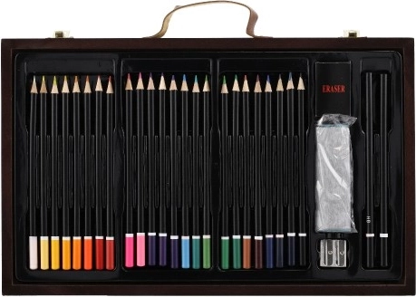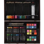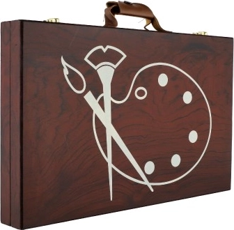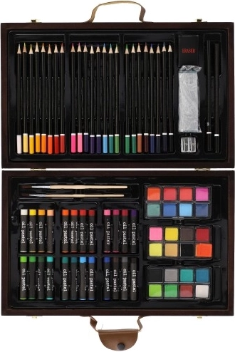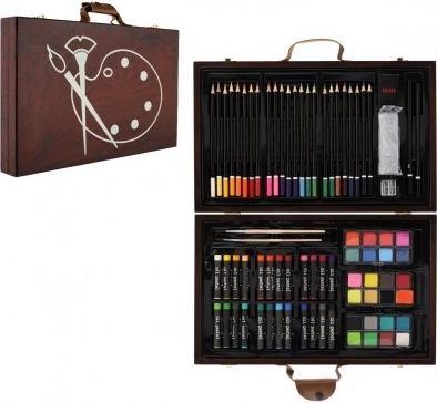 Drevený kufrík plný farieb a pomôcok je dokonalým spoločníkom pre mladých tvorcov. Obsahuje všetko, čo potrebujete k maľovaniu a kresleniu, a to v elegantnom a ľahko prenosnom balení: