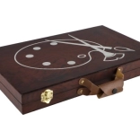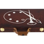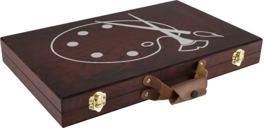 Umelecký drevený kufrík je navrhnutý s ohľadom na jednoduchú prenosnosť vďaka praktickej rukoväti a odolnému materiálu.