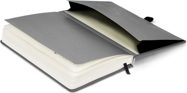 Vnútorné vrecko pojme voľné papiere, vizitky aj drobnosti. Stužková záložka uľahčí orientáciu a rýchly návrat k rozpracovaným poznámkam.