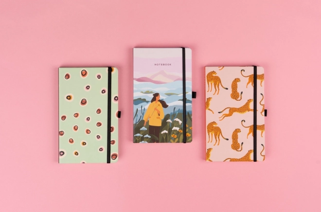 Formát 13 × 21 cm sa zmestí do každej tašky. Elastická gumička udrží zápisník pevne zatvorený a vďaka pútku budete mať ceruzku vždy po ruke.