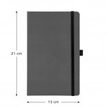 Štýlový zápisník NOTIQUE v praktickom formáte 13 × 21 cm je navrhnutý na komfortné každodenné používanie. Pevné dosky chránia obsah, elastická gumička bezpečne drží zápisník zatvorený a žltý linkovaný papier je príjemný pre oči aj pri dlhšom písaní.