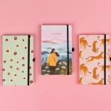 Dizajnové dosky s motívom krajiny dodajú vašim poznámkam šmrnc, zatiaľ čo pevná väzba a elastická gumička spoľahlivo ochránia obsah pri každodennom nosení.
