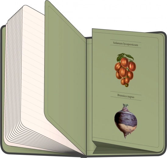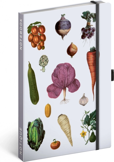 Zápisník v pevných doskách z kolekcie Kateřiny Winterovej s ilustráciami rôznorodej zeleniny, s uzatváraním na gumičku, vreckom na drobnosti a pútkom na ceruzku. Vo vnútri nájdete 172 linajkovaných strán na žltom papieri na zapisovanie všetkých vašich nápadov.