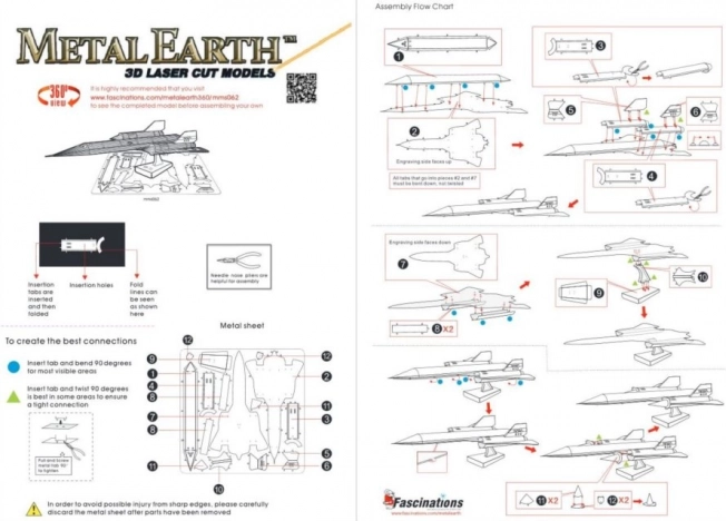 Jednotlivé diely vyberte z kovových plátkov, v prípade potreby použite malé štípacie nožnice (nie sú súčasťou). Diely sa spájajú pomocou zámkov tvorených úchytom (jazýčkom) a otvorom. Jazýček ohnite pomocou malých tenkých klieští (nie sú súčasťou) a postupne spojte všetky zámky, až vznikne veľmi realistický majstrovský kúsok!