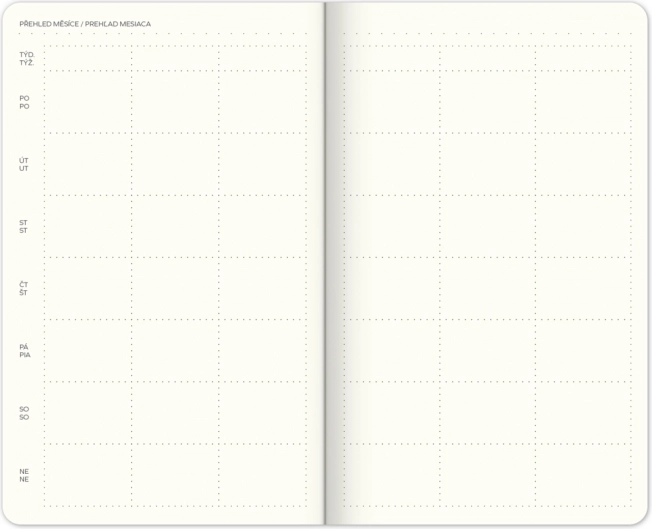 - Nedatované týždenné kalendárium – začnite plánovať kedykoľvek.