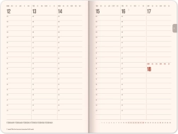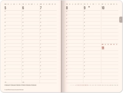 Stĺpcové týždenné rozvrhnutie poskytuje dostatok miesta na poznámky každý deň. V diári nájdete prehľad medzinárodných sviatkov, zoznam českých a slovenských mien, ročné prehľady 2024 a 2025, praktický adresár i vrecko na zadnej predsádke pre drobnosti.