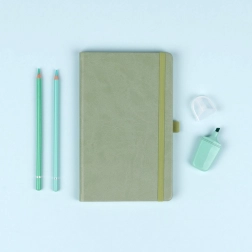 Moderný zelený vzhľad s jemnou textúrou a pevná knižná väzba so zaoblenými rohmi zaručujú dlhú životnosť a pohodlné používanie každý deň.