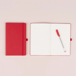 Štýlový a ľahký notes NOTIQUE v klasickej červenej farbe sa stane vaším spoľahlivým spoločníkom do práce, do školy aj na cesty. Pevná knižná väzba a zaoblené rohy zabezpečujú odolnosť a pohodlné používanie, zatiaľ čo bodkované rozvrhnutie (5 mm) na kvalitnom žltom papieri je ideálne na presné písanie, náčrty aj bullet journaling.