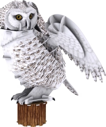 3D model snehovej sovy s detailne spracovanými perami a živými očami vyniká svojím realistickým vzhľadom.