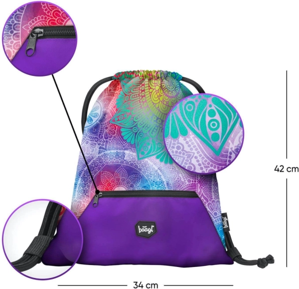 Hľadáte odolný a štýlový sáčok pre deti do školy či na krúžky? Sáčok Baagl s vreckom Mandala ponúkne spoľahlivý priestor na úbor, prezuvky alebo športové doplnky. Vďaka pevnému, ľahko umývateľnému materiálu zvládne každodenné používanie a udrží veci v bezpečí a suchu.