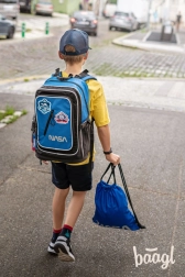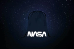 Modré vrecko na chrbát je vybavené výrazným logom NASA, ktoré svieti v tme a zvyšuje viditeľnosť.