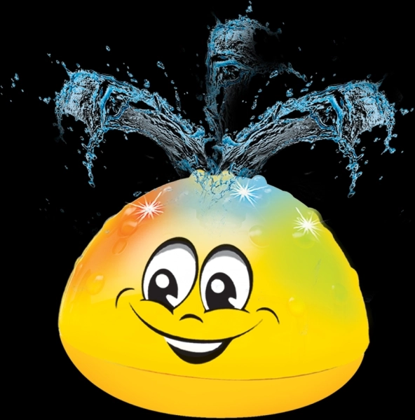 Táto detská fontánka s priemerom 10 cm sa aktivuje kontaktom s vodou – stačí ju položiť na hladinu vo vani alebo bazéne a razom sa rozsvieti a vytvorí jemný vodný gejzír. Žiarivo žlté prevedenie a usmiata tvár podnecujú detskú fantáziu a podporujú zmyslové vnímanie.