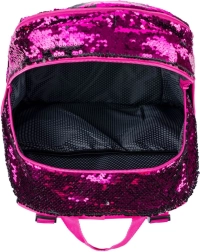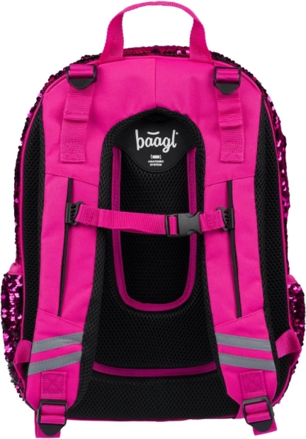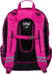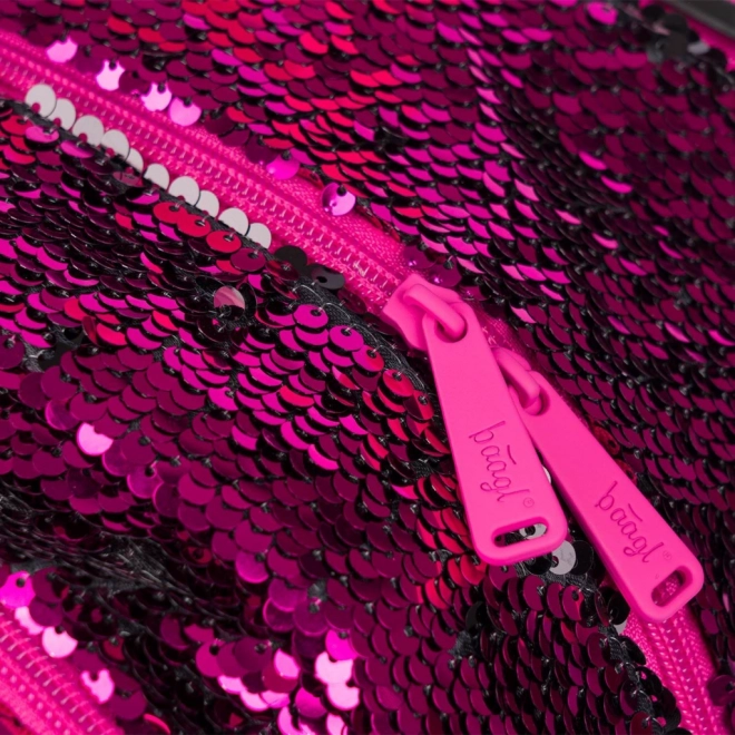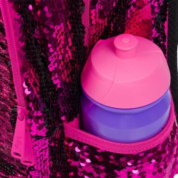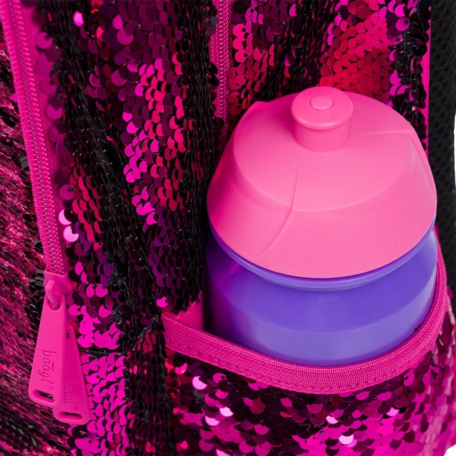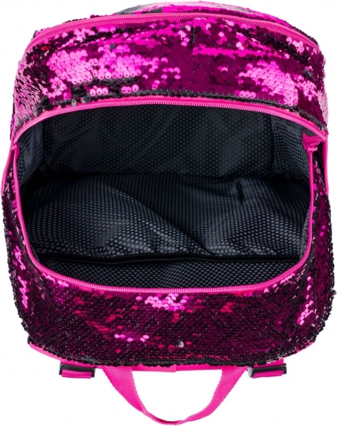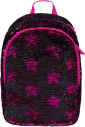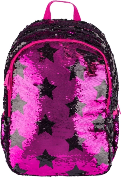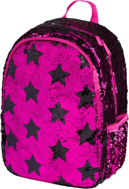 Ružové flitre a čierne hviezdne vzory dodávajú batohu výrazný štýl, ideálny pre deti, ktoré sa chcú odlíšiť.