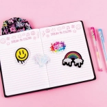 V balení nájdete perá, nálepky a lepiace nášivky, ktoré umožňujú kreatívne vyžitie a personalizáciu.
