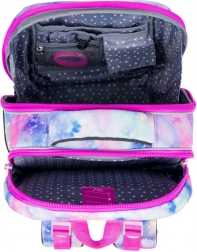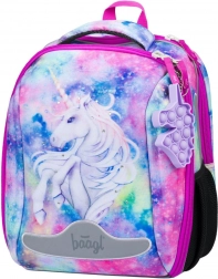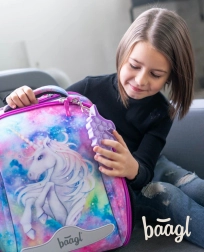 Školská taška Baagl Shelly Jednorožec sa vyznačuje vystuženým telom, ktoré chráni obsah tašky rovnako ako pancier. Vďaka dvojkomorovému systému sa záťaž rovnomerne rozloží, zatiaľ čo predná komora obsahuje praktický organizér s kapsičkou na drobnosti a karabínu na kľúče.