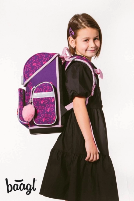 Aktovka je vybavená reflexnými prvkami pre vyššiu bezpečnosť dieťaťa a trendy plyšovým príveskom ako štýlovým doplnkom.