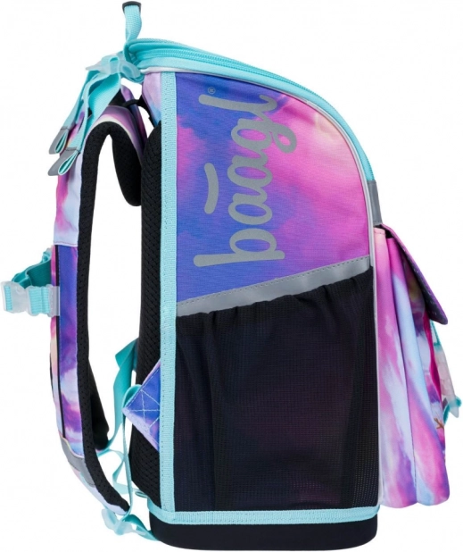 Aktovka obsahuje bočné sieťované vrecká na pitie a reflexné prvky pre zvýšenie bezpečnosti dieťaťa na ceste do školy.
