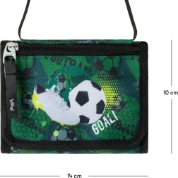 Táto peňaženka na krk BAAGL s futbalovým dizajnom je skvelou voľbou na bezpečné uloženie vreckového, drobných predmetov a dokladov. Vďaka odolnému materiálu a spoľahlivému suchému zipsu udrží obsah na svojom mieste aj pri každodennom používaní.