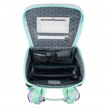 • Vo vnútri aktovky je priehľadné vrecko s rozvrhom a vnútorný organizér umožňujúci rovnomerné rozloženie hmotnosti, doplnený gumičkou na fixáciu.