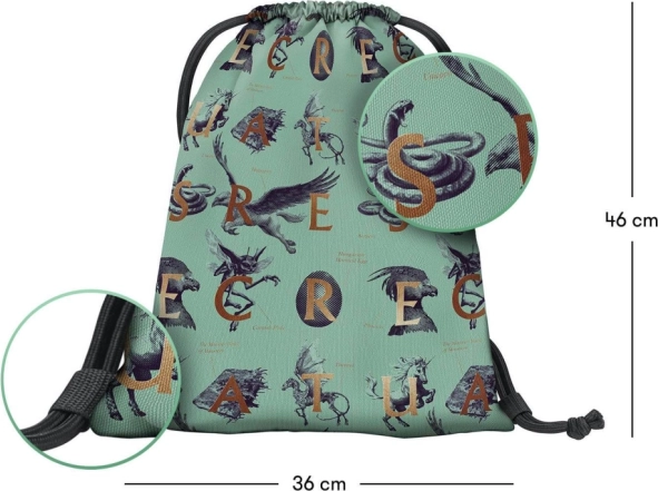 Vrecko na obuv alebo drobnosti s motívom Harry Potter Fantastické zvery je ideálne pre vaše voľnočasové aktivity. Je vyrobené z pevného a umývateľného materiálu a je možné ho pohodlne nosiť na chrbte.