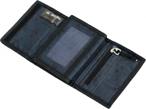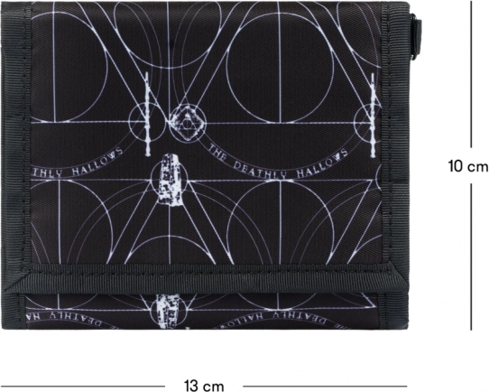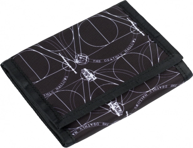 Peňaženka je zdobená motívom Relikvie smrti, čo je neodolateľné lákadlo pre fanúšikov čarodejníckej série.