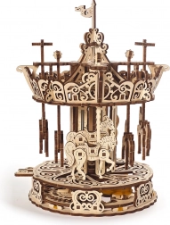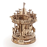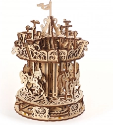 Ornamentálne laserové gravúry, prírodné drevo a klasický motív kolotoča z neho robia pútavú ozdobu vitríny či detskej izby.