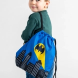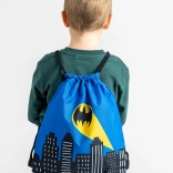 Modré vrecko zdobí ikonické logo Batmana a unikátny mestský motív.