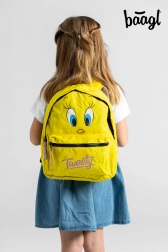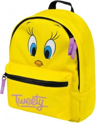 Batoh vyniká jasne žltou farbou s Tweety motívom, čo je atraktívne pre malé deti.