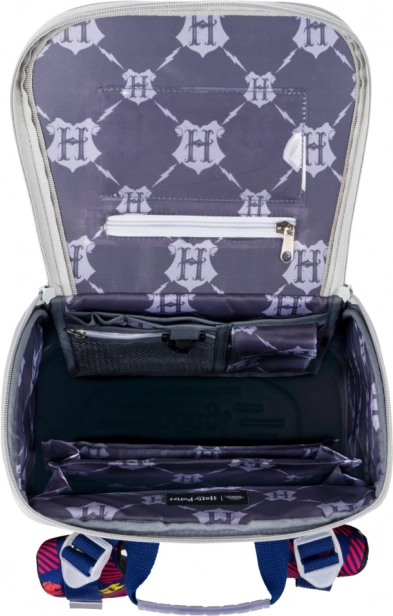 Štýlový školský set pre malých fanúšikov HARRY POTTER: ergonomická aktovka Zippy s posuvným systémom ERGO ADJUSTABLE SYSTEM, klasický peračník a praktický vak na chrbát. Aktovka ponúka výklopný systém pre jednoduchý prístup, premyslenú organizáciu, bočné vrecká na fľašu, izolované predné vrecko, ľahkú konštrukciu (1 100 g), objem 18 l, vodeodolný materiál a reflexné prvky pre bezpečnosť.