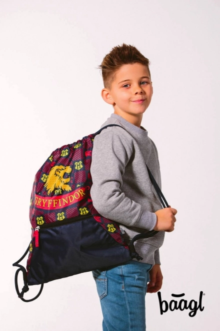 Všetko zladené v dizajne CHRABROMIL z HARRY POTTER: ľahká a pevná aktovka, peračník s dvoma chlopňami (bez náplne) a odolný vak s predným vreckom na zips a so sťahovaním na chrbát.