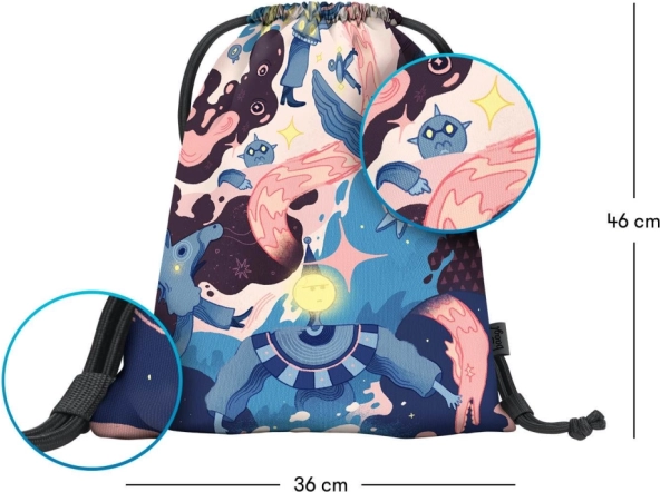 Vďaka sťahovaniu pomocou pevných šnúrok vrecúško rýchlo uzavriete a zároveň ho môžete pohodlne nosiť na chrbte ako batoh. Ideálne do školy, na krúžky, tréningy aj výlety.