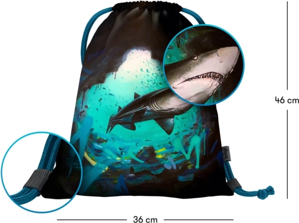 Štýlové vrecko s motívom žraloka od LUKERO prepája funkčnosť a moderný dizajn. Hodí sa do školy, na krúžky aj šport, kde bezpečne uschová obuv alebo menšiu výbavu. Odolný, ľahko udržiavateľný materiál zaistí dlhú životnosť a čistotu aj pri každodennom používaní.