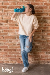 Motív lastovičiek a kvetín dodá fľaši hravý vzhľad, zatiaľ čo pútko uľahčí prenášanie na ceste do školy, na tréning aj na výlet. Používaním opakovane plniteľnej fľaše navyše znížite spotrebu jednorazových plastov a podporíte udržateľný životný štýl.