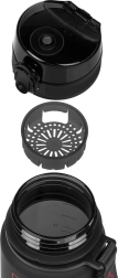 Uzamykateľné viečko s poistkou bráni nechcenému otvoreniu v batohu a flip-top mechanizmus umožní rýchle pitie jednou rukou. Odnímateľné sítko využijete na ovocné limonády alebo sypané čaje – materiál je vhodný aj na horúce nápoje. Súčasťou je pútko na pohodlné nosenie.