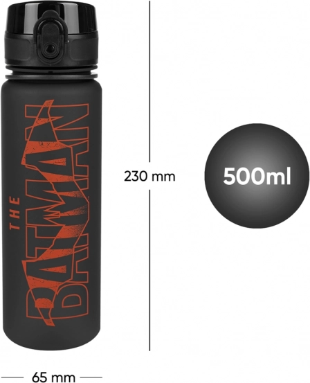 Táto čierna fľaša s ikonickým červeným logom BATMAN zaujme dizajnom aj praktickosťou. Ľahké telo z odolného tritánu sa ľahko drží, neabsorbuje pachy a je zdravotne nezávadné (bez BPA, PVC a ftalátov). Praktický objem 500 ml a prehľadná ryska na kontrolu príjmu tekutín z nej robia skvelého parťáka na každý deň.