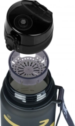 Praktická a odolná tritánová fľaša s objemom 500 ml je ideálna do školy, do práce aj na šport. Má zamykacie flip-top viečko proti úniku tekutín, sito na ovocie či čaj a pohodlné pútko na nosenie. Bezpečný BPA free materiál nezapácha plastom a je vhodný aj na horúce nápoje.
