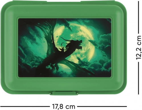 Tento praktický box na desiatu je ideálnym riešením pre každodenné uloženie vašich obľúbených pokrmov. So štýlovým dizajnom draka letiacim proti splnu si nielenže udrží vaše jedlo čerstvé, ale tiež zaujme originálnym vzhľadom. Jednoduché uzatváranie na jeden zámok a vnútorná deliaca priehradka znamenajú, že každý kúsok jedla zostane na svojom mieste.
