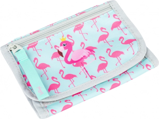 Peňaženka s motívom plameniakov ponúka praktické riešenie pre každodenné potreby. Vyrobená z pevného a odolného materiálu, zabezpečuje dlhodobú životnosť aj pri pravidelnom používaní. Je vybavená šnúrkou pre ľahké zavesenie na krk, čo zvyšuje jej praktičnosť. Uzatváranie na suchý zips sa ľahko používa a navyše obsahuje kapsičku na drobné s zipsom pre bezpečné uskladnenie drobných predmetov.