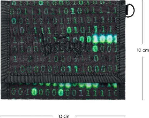 Peňaženka sa pýši čierno-zeleným binárnym dizajnom, ktorý osloví všetkých nadšencov digitálnej kultúry.